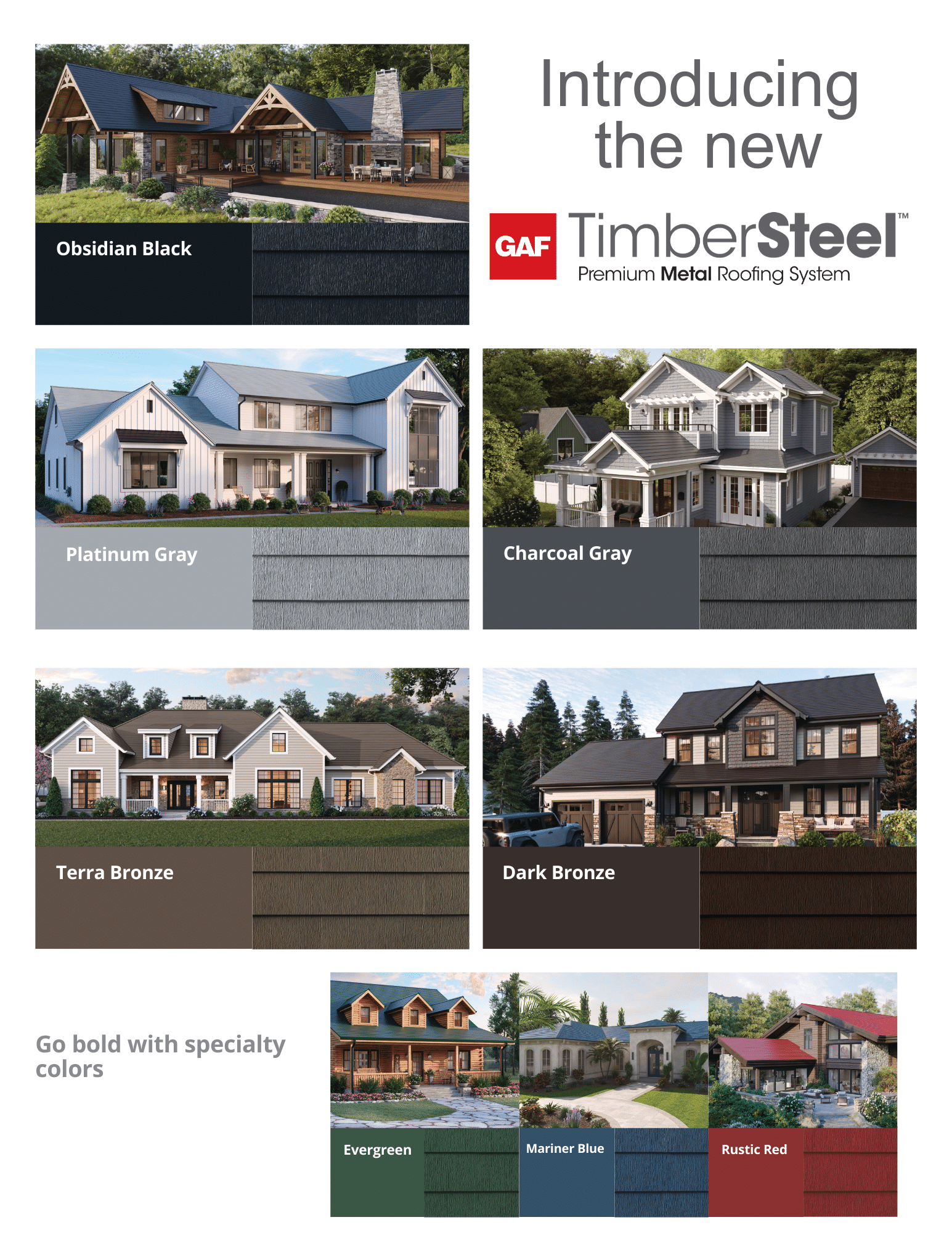 Forget the old days of corrugated silver panels. Modern metal roofing — especially systems like GAF Timberline® Steel — delivers the look of architectural shingles with the strength of steel.