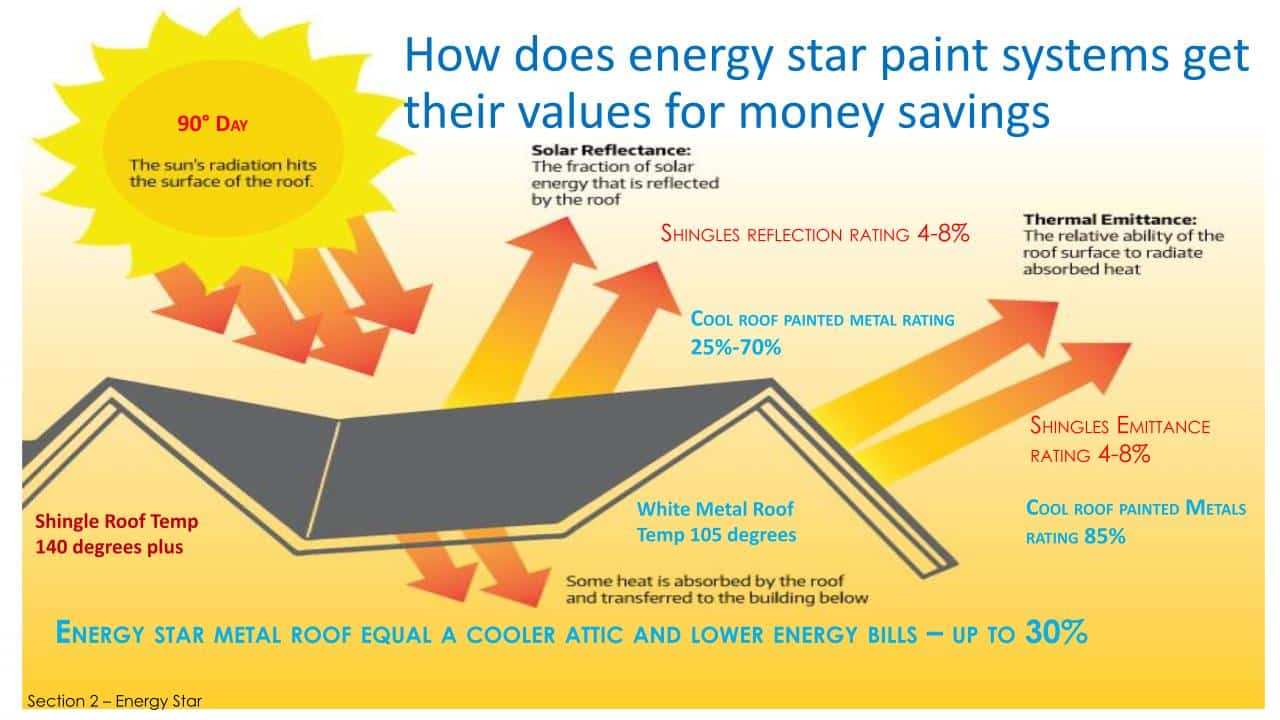 Metal roofing, however, reflects solar rays instead of absorbing them — reducing attic temperatures and cooling costs by as much as 25%. Combine
